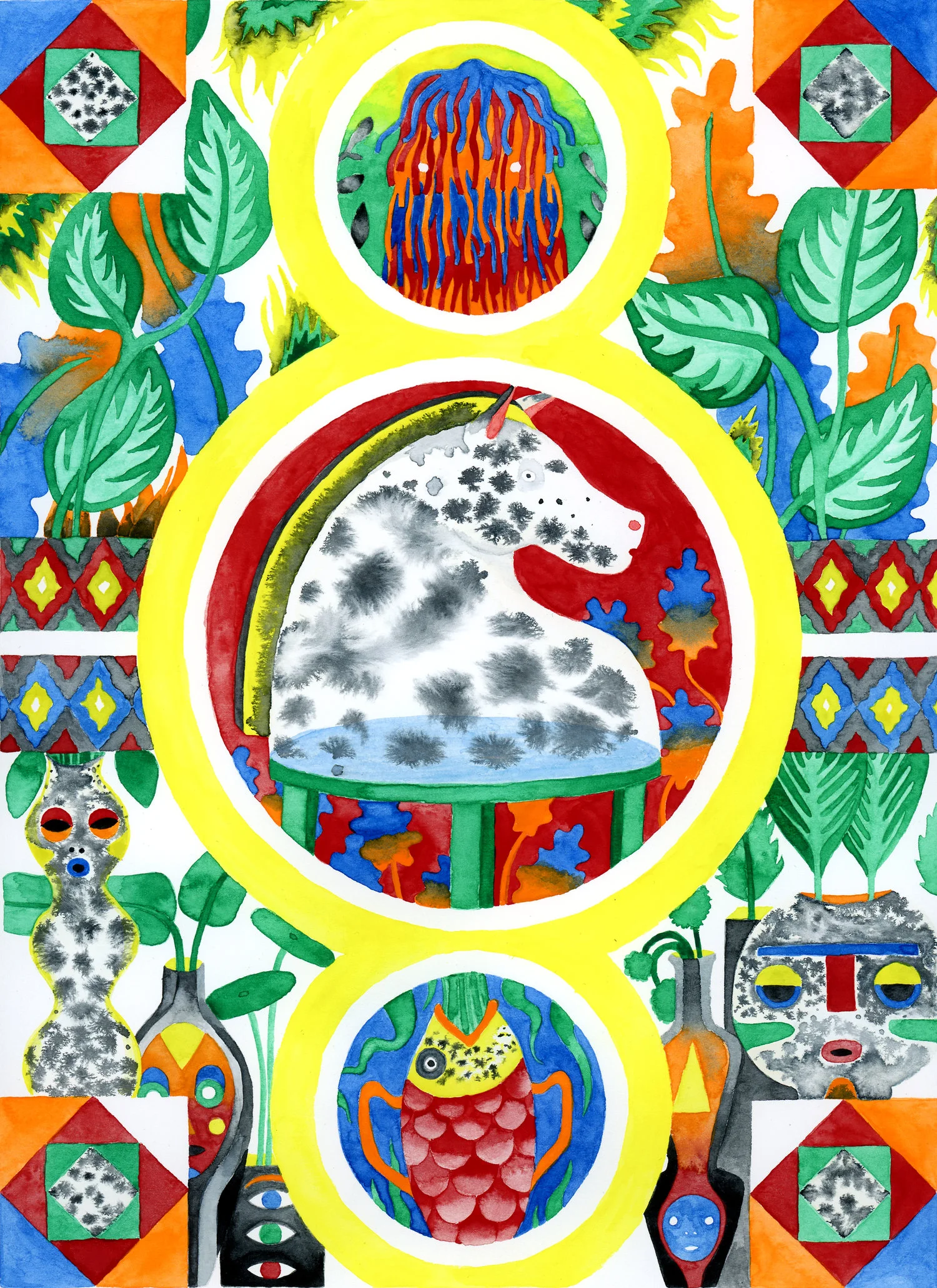 Depending on what the illustration is about, I will decide which way to best materialize it: by hand with watercolor and inks or digitally.